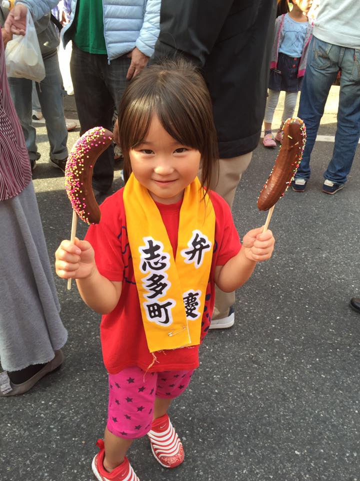 ジャンケンに勝って念願のチョコバナナ2本ゲットの妹(笑)。来年は、手古舞をやりたいと驚きの発言。今まで興味なし!!!と言い放っていたのに(笑)。お友達がめっちゃ可愛かったから♥みたい。