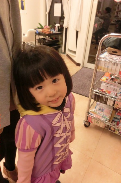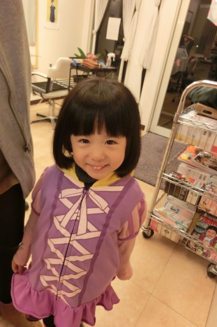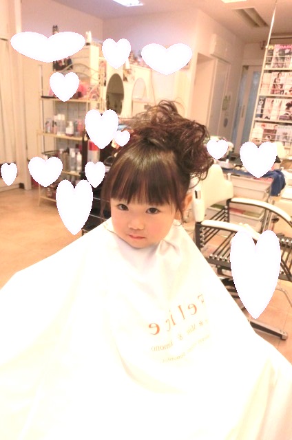 ファミリーでいつも御利用いただいている方のお嬢様をカットさせていただきました。カットをするのが初めて!とても緊張している御様子が可愛らしかったです。