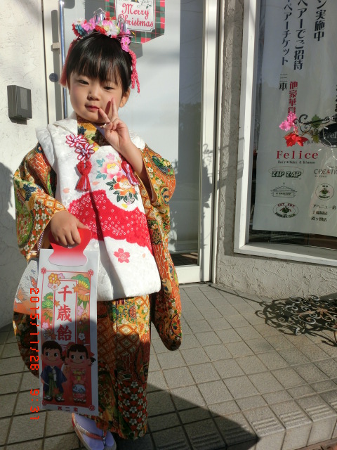 とってもキュートな3歳のお嬢様♥ 大安吉日の昨日は、七五三のお子様たち、お母様、結婚式など、ヘアメイク着付けのお客様でにぎわっていた店内。今年は、七五三ピークもまだまだ11月下旬までつづきます♪ おめでとうございます☆ご来店ありがとうございました!!